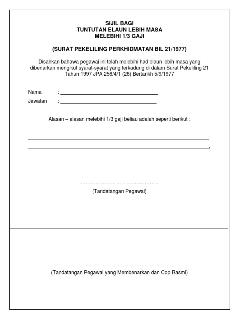 Tuntutan Elaun Lebih Masa / When CA18761 Talk About... Government References (Perintah ... - Saya juga mengesahkan bahawa tiada tuntutan elaun lebih masa dibuat oleh pemohon bagi kerja lebih masa yang sama.
