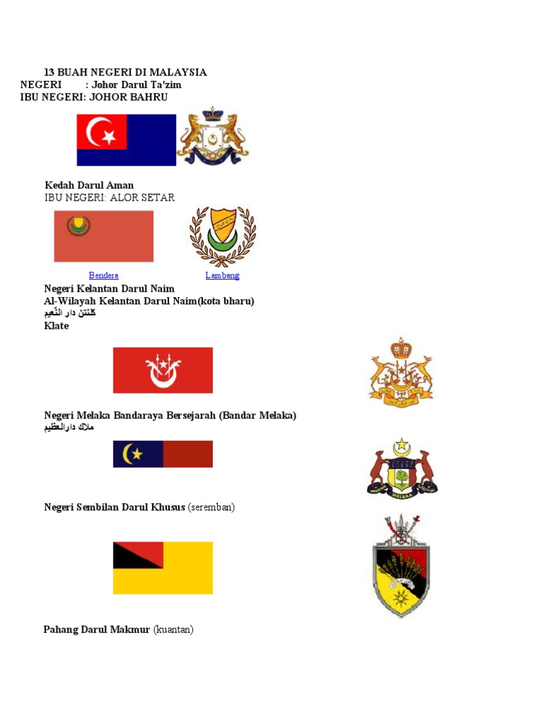 Maksud bendera & jata setiap negeri di malaysia. Dan malaysia memang merupakan negara tetangga bahkan malaysia juga berbagi satu daratan dengan satu pulau di indonesia, yaitu kalimantan. Tak semua pejabat tanah negeri ada menyediakan kadar cukai tanah di laman web mereka, jadi anda boleh cuba untuk menghubungi pejabat tanah tertentu atau pergi ke pejabat mereka. Malaysia terdiri daripada 13 buah negeri. There is a printable worksheet available for download here so you can take the quiz with pen and paper.